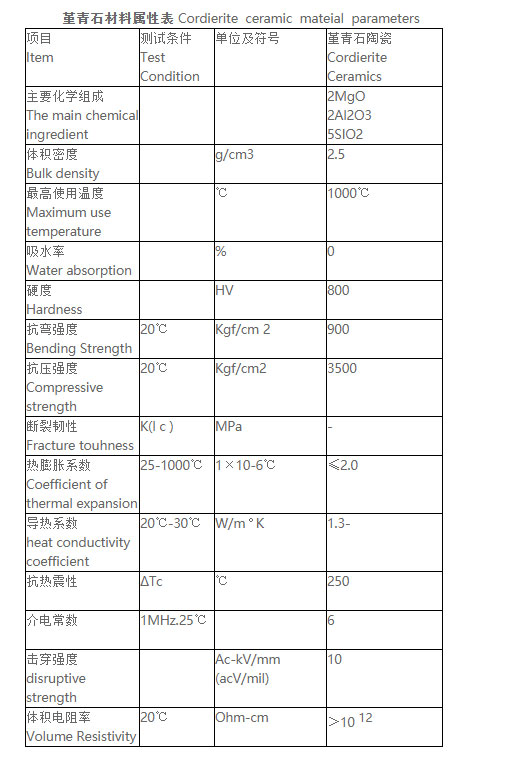 堇青石瓷的主晶相為2MgO·2Al2O3·5SiO2,常做吸水陶瓷,熱膨脹系數低,熱穩(wěn)定性好,用于制作加熱器底板、熱電偶絕緣瓷件、窯爐窯具等冷熱急變高的場所,也可用作線圈骨架,耐電弧作用的電絕緣陶瓷材料,電熱絕緣裝置的燃燒器噴嘴等。